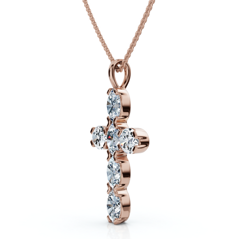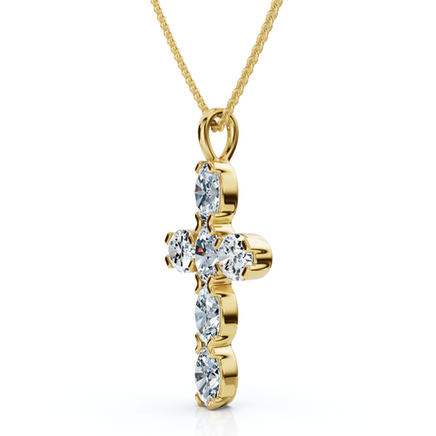 3/4Ct Oval Diamond Cross 14k Gold 18" Necklace 3/4" Tall