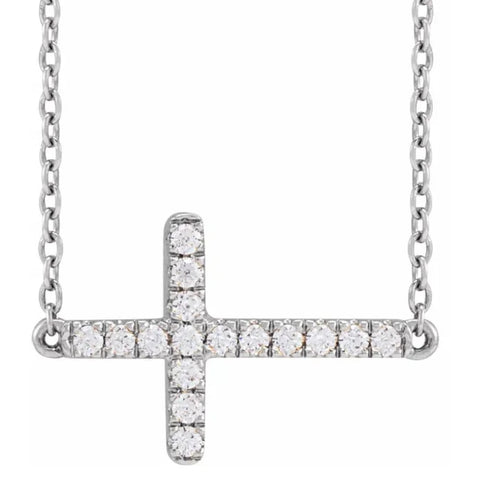 Women's 1/4Ct Diamond Sideways Cross 14k Gold 18" Lab Grown