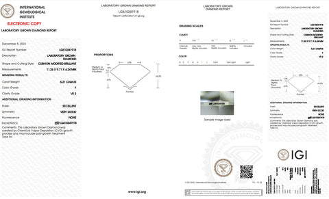 Certified 5 3/4Ct Aria Cushion Diamond Engagement Ring 14k Gold or Pt Lab Grown