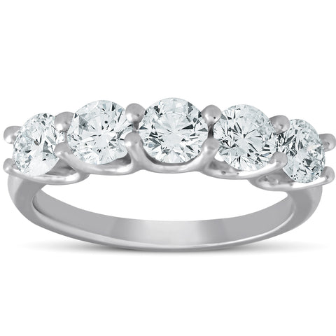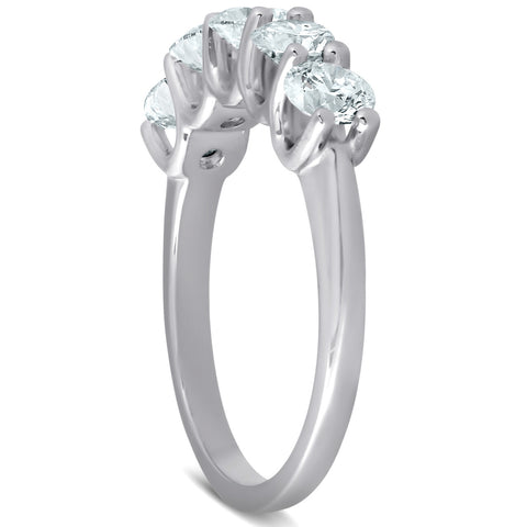 1 1/2 Ct Diamond Five Stone U Prong Wedding Ring 14k White Gold