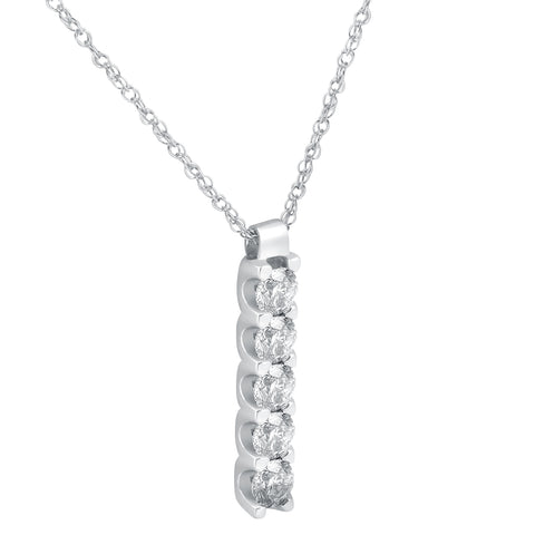 14K White Gold 1 1/4ct Journey Genuine Diamond Pendant