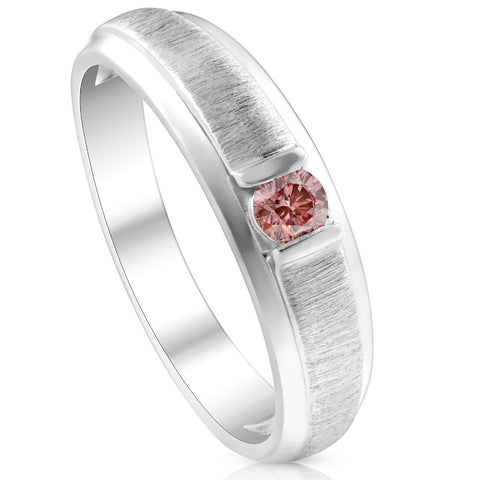 Mens Brushed Pink Diamond Lab Grown Wedding Brushed Anniversary Ring White Gold