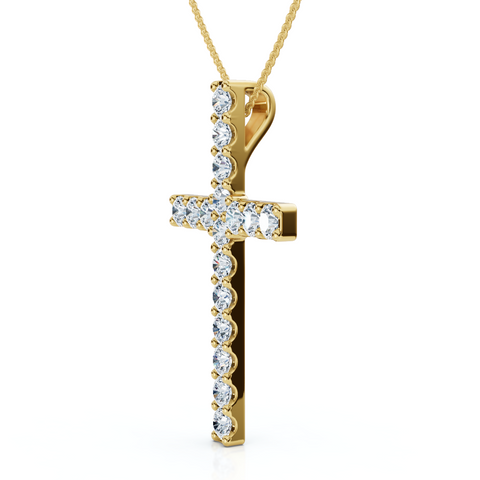 1Ct Diamond Cross Pendant 1 1/4" Tall Womens 14k Gold 18" Necklace Lab Grown