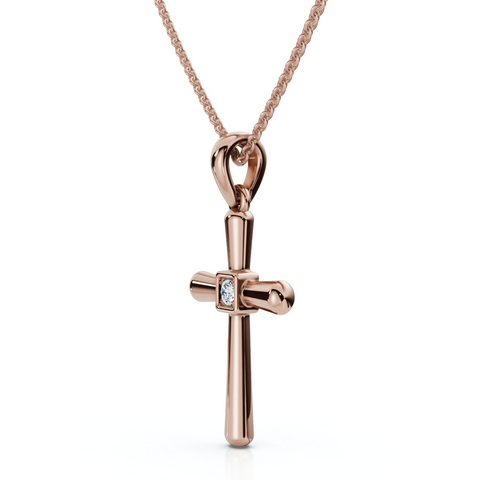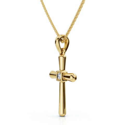 Diamond Solitaire Lab Grown Cross 10k Gold Necklace 3/4" Tall Pendant