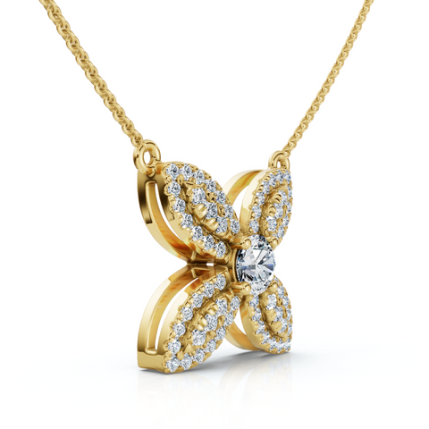 1/2Ct Diamond Flower Pendant 14k Gold 18" Necklace Lab Grown