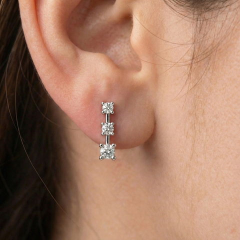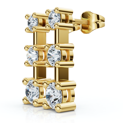 1Ct Three Stone Drop Earrings 10k Gold Lab Grown 5/8" Tall Push Back