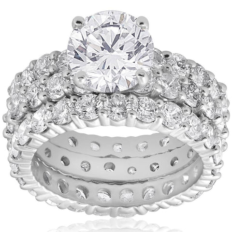 7ct Diamond Engagement Eternity Wedding Ring Set 14k White Gold