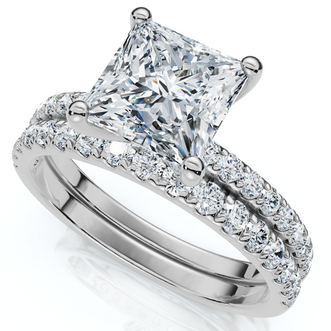 Certified 1.90Ct Princess Cut Diamond Engagement Wedding Ring Set Lab Grown