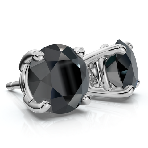 1 1/2 ct 14k White Gold Round Black Diamond Stud Earrings