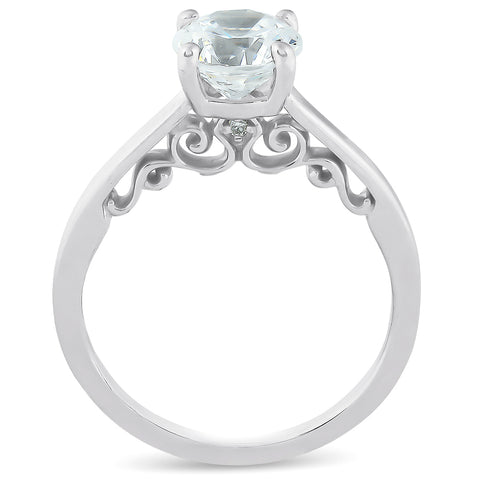 1 1/2 Ct Diamond & CZ Engagement Ring 14k White Gold
