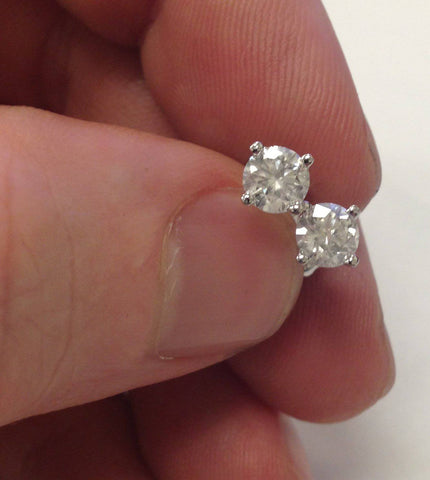 1 1/2ct 14K White Round Cut Studs Earrings Screw Back