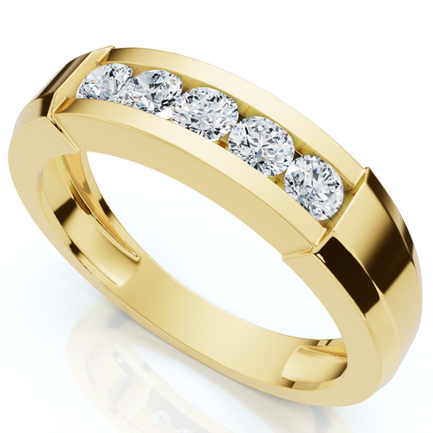 1/2ct Mens 14K Yellow Gold Round Diamond Wedding Ring