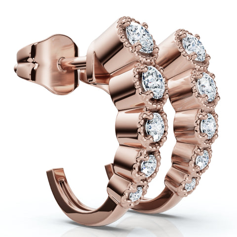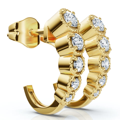 1/4Ct Diamond Hoops J Shape Huggie Gold Lab Grown
