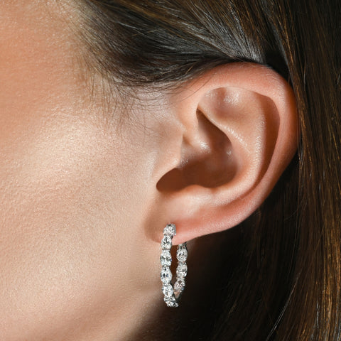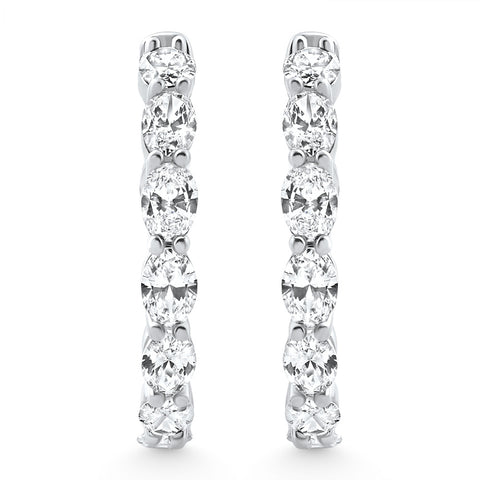 3Ct TW Oval Diamond Inside Outside Hoops Vault Lock 14k White Gold Lab Grown