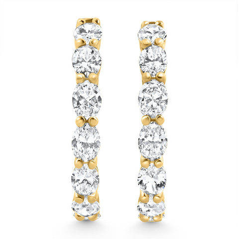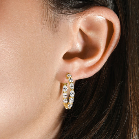 3Ct TW Oval Diamond Inside Outside Hoops Vault Lock 14k Yellow Gold Lab Grown 1"