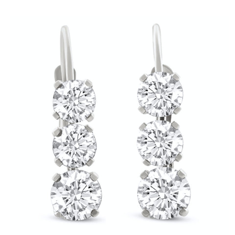 1 1/2Ct 3-Stone Diamond Leverback Hoops Women's Earrings 14k Gold 1/2" Tall Lab