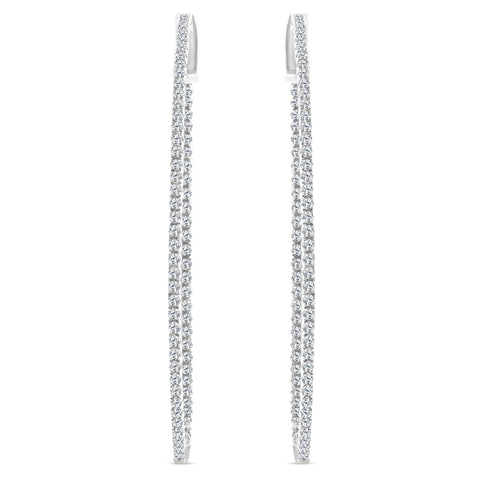 1 1/5 Ct Diamond Inside Outside Hoops 14k White Gold Vault Lock 2" Tall