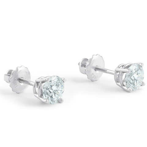 Certified 3 Carat (ctw) Natural Diamond Screw Back Studs in 14k White Gold
