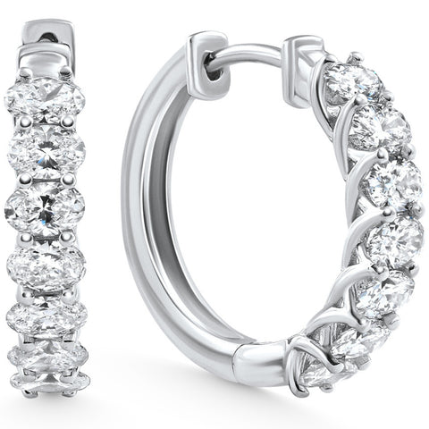 1 - 5 Ct Oval Diamond Hoops 14k Gold Lab Grown Women's Earrings