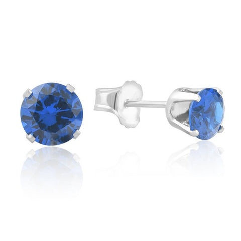 1Ct TW Blue Sapphire 5mm Studs in 10k White or Yellow Gold