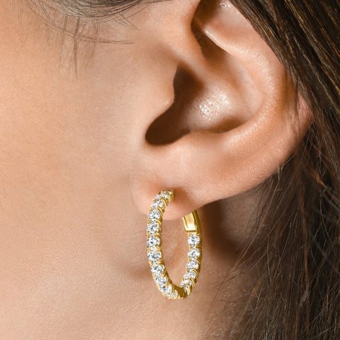 3Ct Diamond Lab Grown Inside Outside Hoops 14k Gold Eearrings 1" Tall