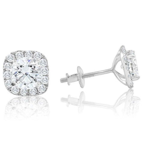 2 1/4Ct Cushion Halo Diamond Screw Back Studs 14k White Gold Earrings Lab Grown