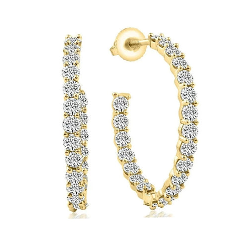 4 1/2Ct Diamond Inside Outside Hooops Gold Women's Earrings Lab Grown 1.25" Tall