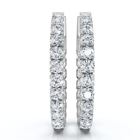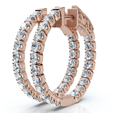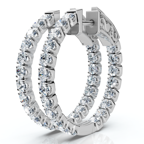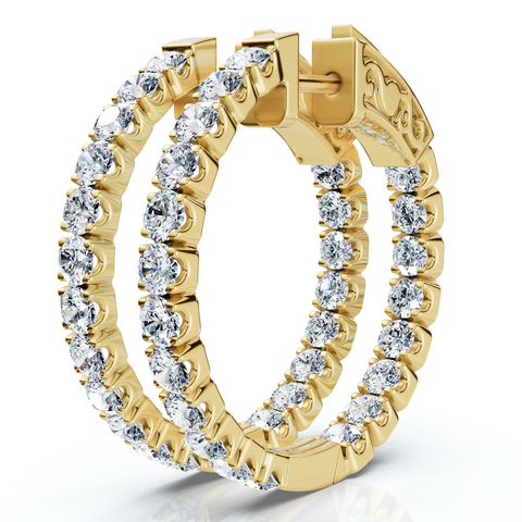 4 1/2Ct Diamond Inside Outside Hooops Gold Women's Earrings Lab Grown 1.25" Tall