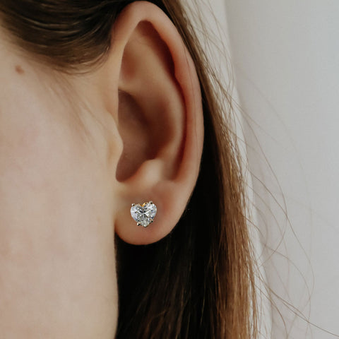 2Ct TW Heart Shape Diamond Studs Lab Grown 14k White Gold