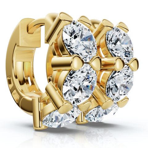 3Ct Diamond Huggie Hoop Earrings 14k Gold 1/2" Tall Lab Grown EF/VS