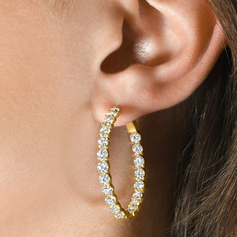 4 1/2Ct Diamond Inside Outside Hooops Gold Women's Earrings Lab Grown 1.25" Tall