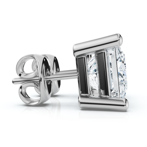 .66Ct Quality Square Princess Cut Natural Diamond Stud Earrings in 14K Gold Basket Setting