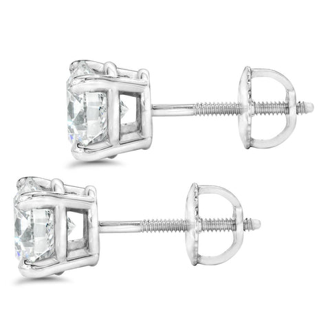 Certified 3 Carat (ctw) Natural Diamond Screw Back Studs in 14k White Gold