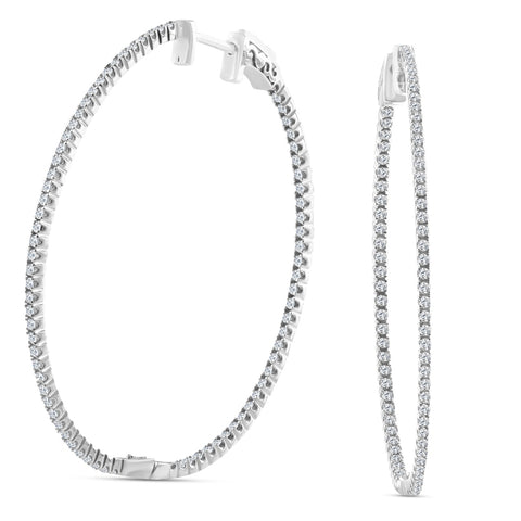 1.20Ct Diamond Inside Outside Skinny Hoops 14k White Gold Lab Grown2" Tall