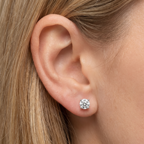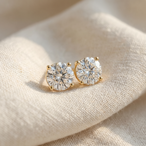 Round Four Prong Diamond Studs Lab Grown 14k Gold