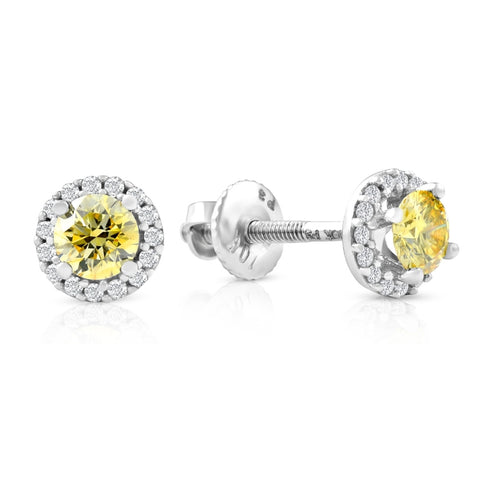 1/2 Ct Halo Fancy Canary Yellow Lab Grown Diamond Studs 10k White Gold Earrings