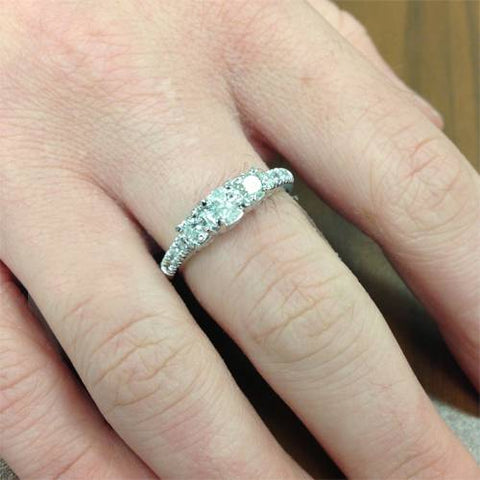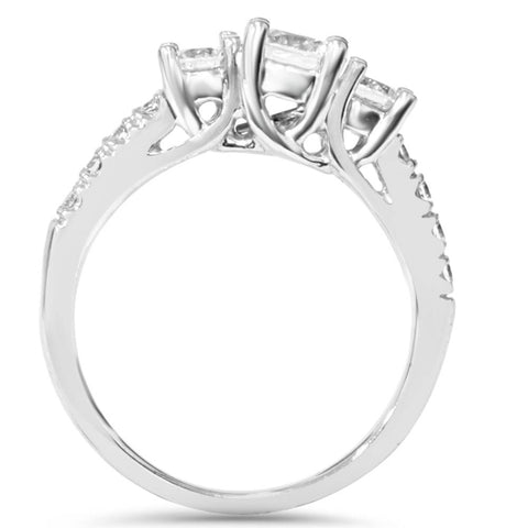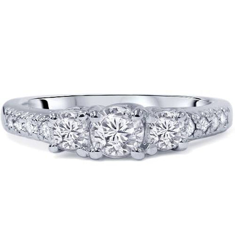1 1/6ct 3 Stone Genuine Diamond Engagement Ring 14K White Gold