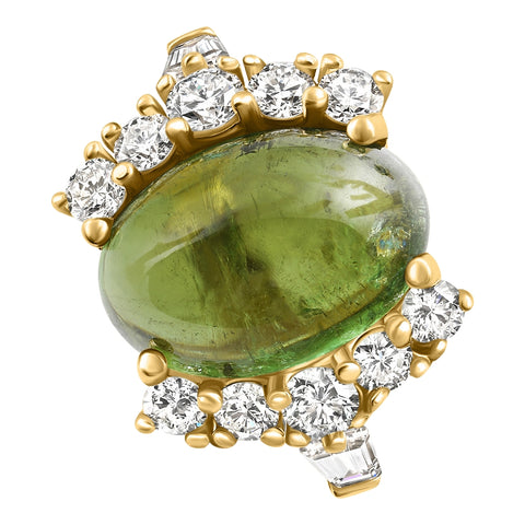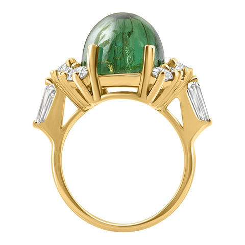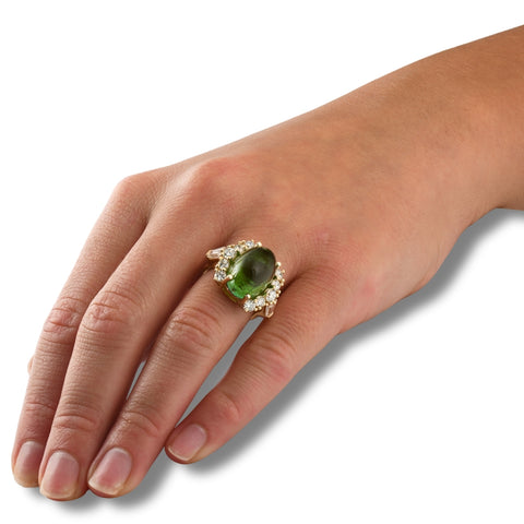 14.29Ct Green Tourmaline Heirloom Diamond Ring 14k Yellow Gold