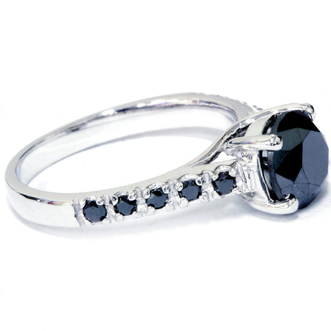 2 1/4 ct Black Diamond Solitaire Accent Engagement Ring 14k White Gold