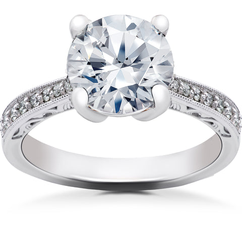 2 1/6 ct Lab Created Eco Friendly Diamond Vintage Engagement Ring 14k White Gold