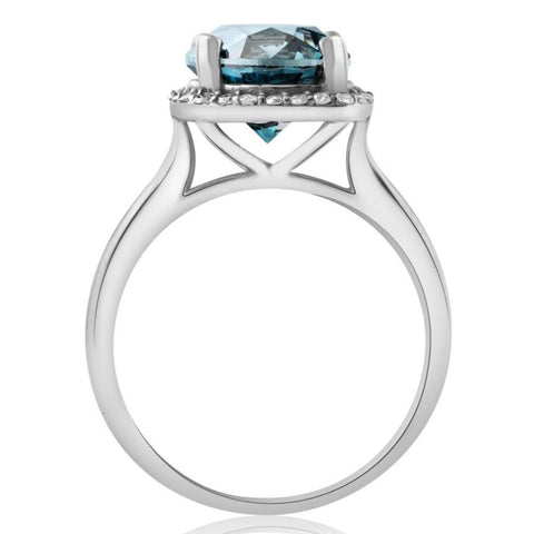 3 1/4Ct Blue Diamond Halo Engagement Ring Lab Grown in 14k White Gold