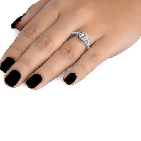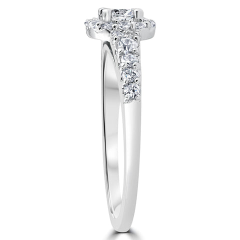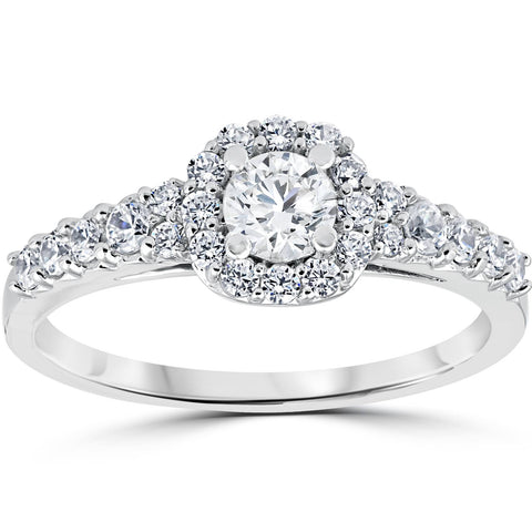 3/4CT Cushion Halo Round Diamond Engagement Ring 14K White Gold
