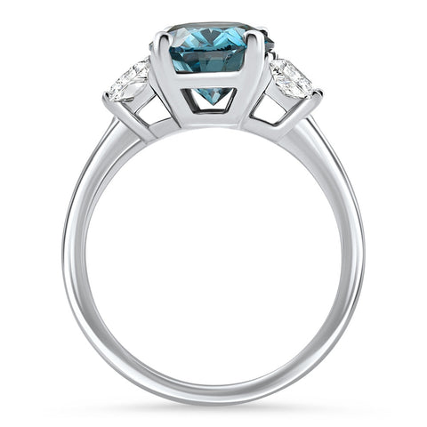 3.63Ct Blue Oval & Trapezoid Diamond Engagement Ring 14k White Gold Lab Grown