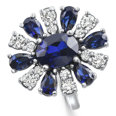 3.80Ct Nicole Blue Sapphire Diamond Ring 14k White Gold Lab Grown