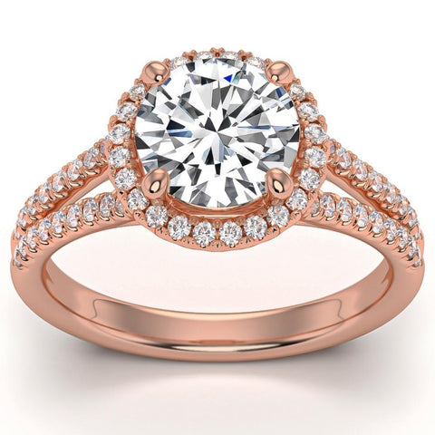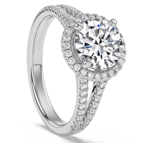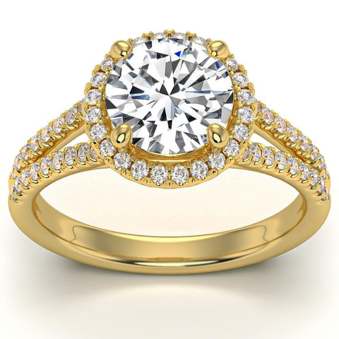 3Ct Halo Diamond Engagement Ring Split Band White, Yellow or Rose Gold Lab Grown