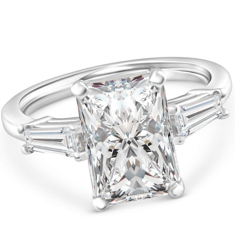 Certified 4.75Ct Radiant Cut Baguette Diamond Engagement Ring 14k Gold Lab Grown