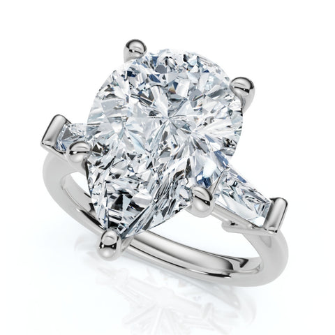 5 3/4Ct Certified Pear & Baguette Diamond Engagement Ring 14k Gold Lab grown