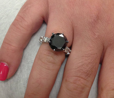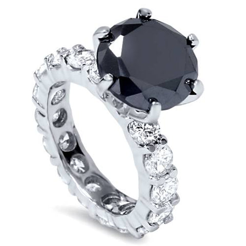 8CT Treated Black & White Diamond Eternity Engagement Ring Solid 14K White Gold