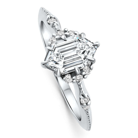 Certified 1 1/3Ct Elongated Hexagon Diamond Engagement Ring 14k Gold Lab Grown