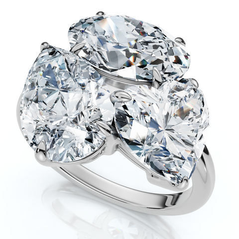 Certified 6Ct Abstract 3-Stone Diamond Ring 14k White Gold Lab Grown